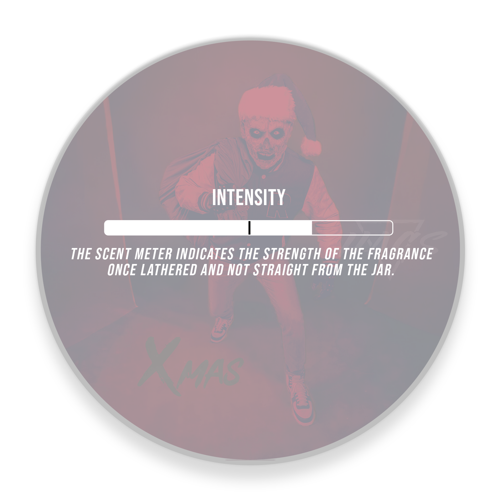 The Scent meter label on the bottom of the jar indicates the strength of the fragrance once lathered and not straight from the jar.